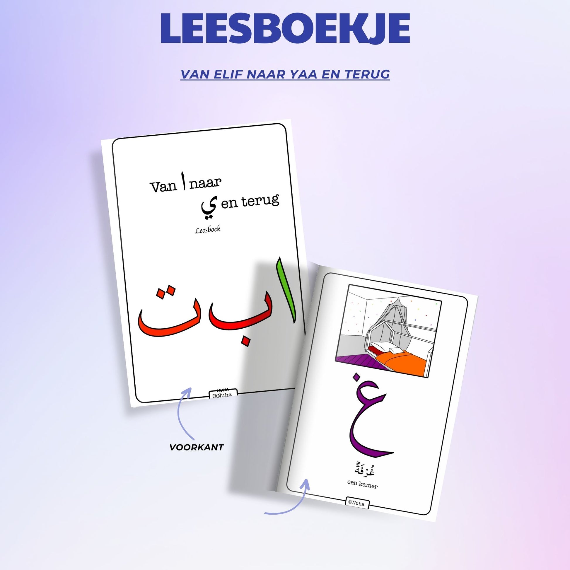 Gebruik dit leesboekje in je les voor het oefenen met de Arabische letters. De woorden in dit boek worden ook gebruikt in het bijbehorend schrijfboek. Op elke pagina vind je een letter, een voorbeeld woord met de Nederlandse vertaling en een kleurrijke illustratie. De pagina's kunnen losgemaakt worden en ingezet worden bij de leermethode visueel leren. Hiervoor hang je de uitgekozen pagina in je leslokaal op.